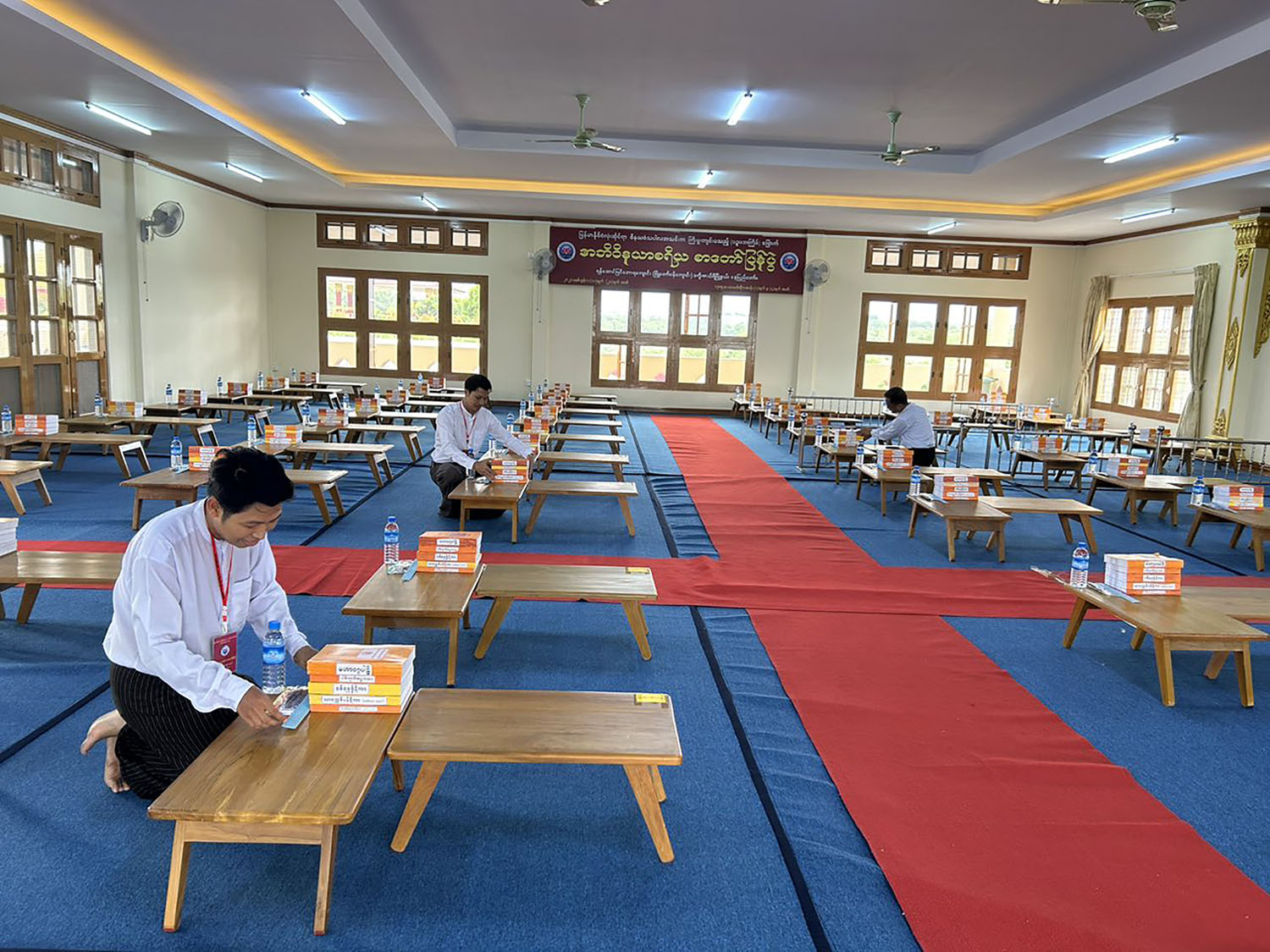 သံဃာတော်များ၏ စာမေးဖြေခန်းမဝင်မှီ ပုံရိပ်များ