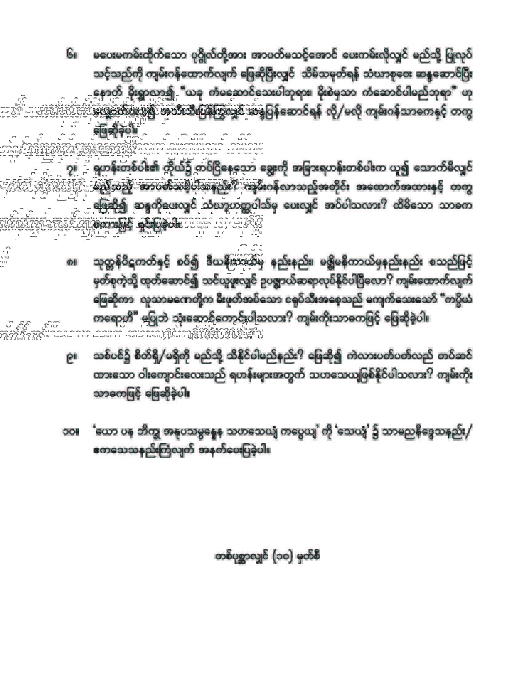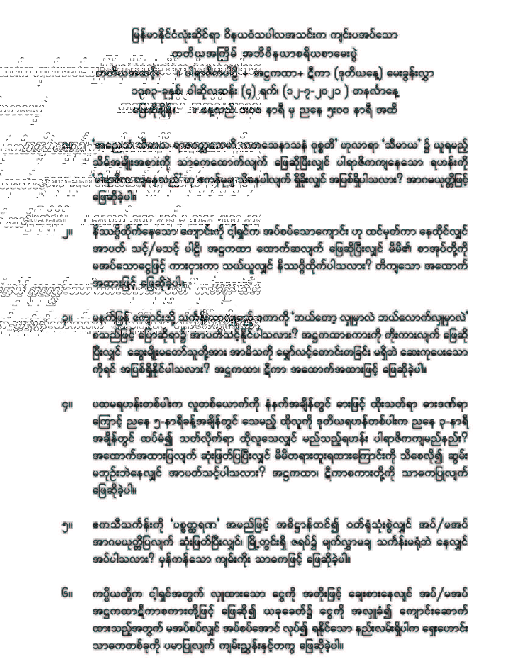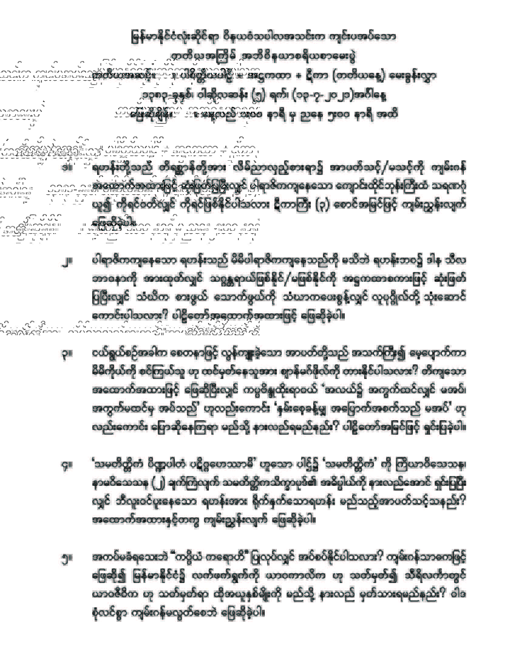 ၂၀၂၁ ခုနှစ် အဘိဝိနယာစရိယစာတော်ပြန်ပွဲ တတိယအဆင့်မေးခွန်း