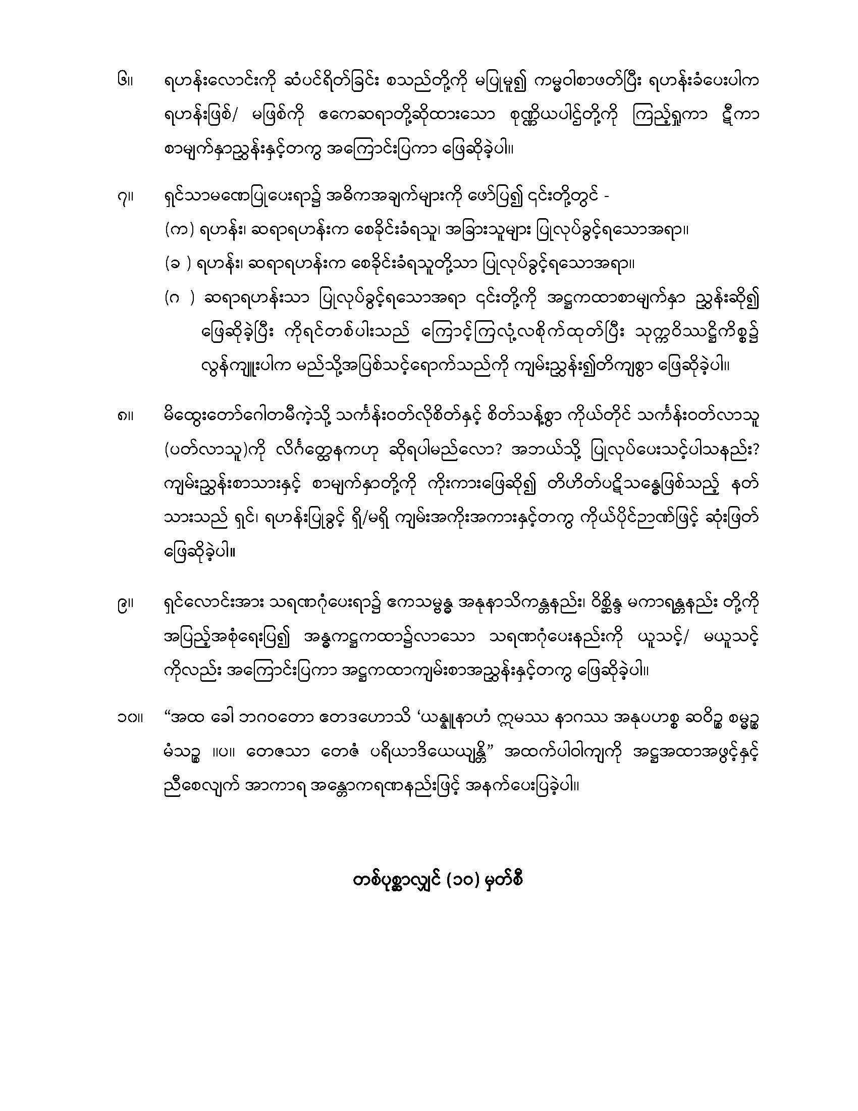 ← ၂၀၂၄ ခုနှစ် အဘိဝိနယာစရိယစာတော်ပြန်ပွဲ ဒုတိယအဆင့်မေးခွန်း