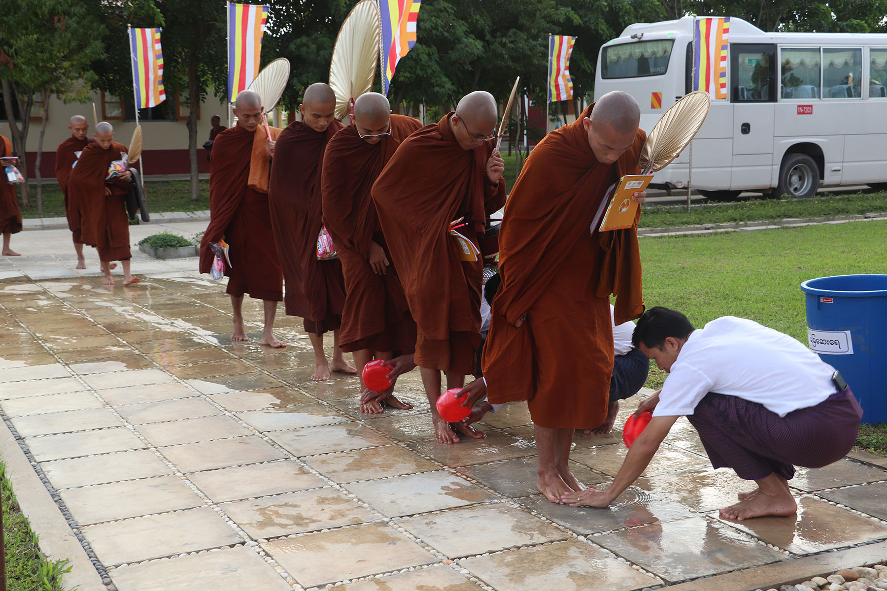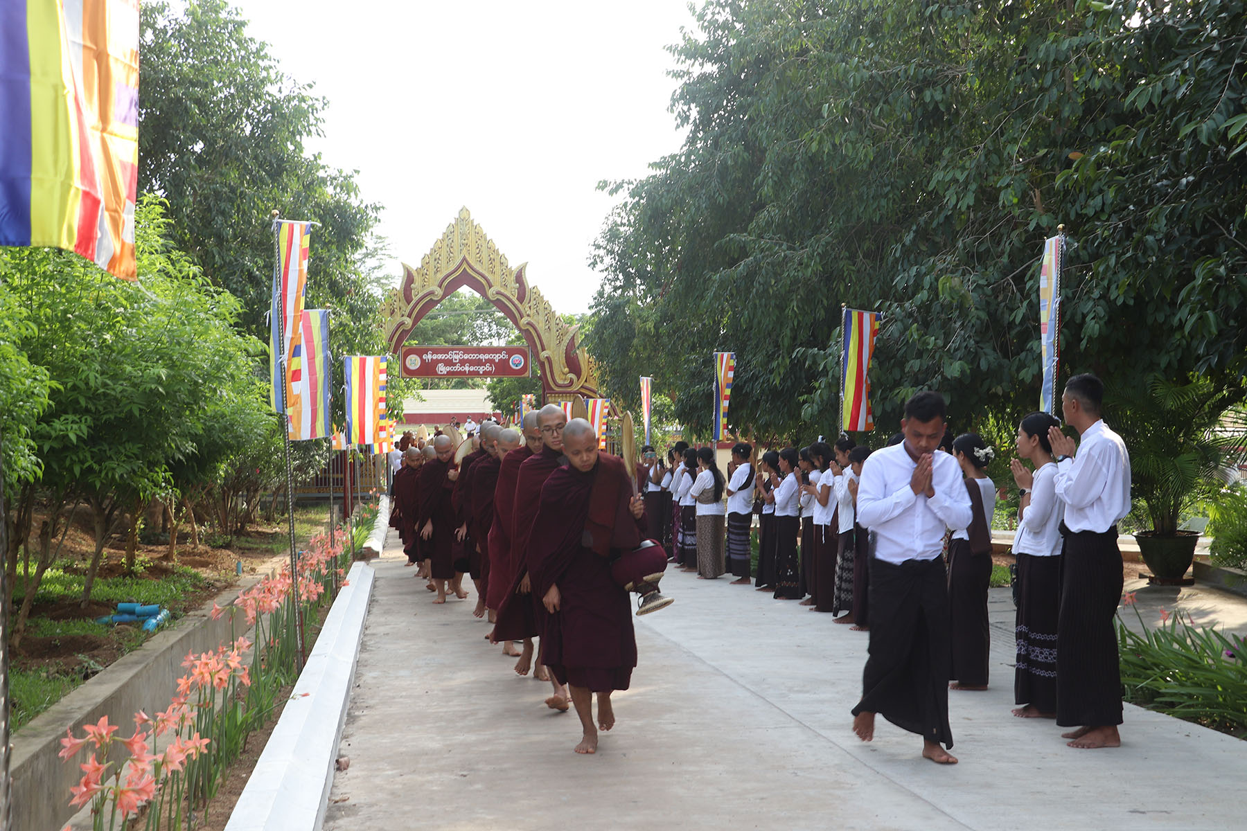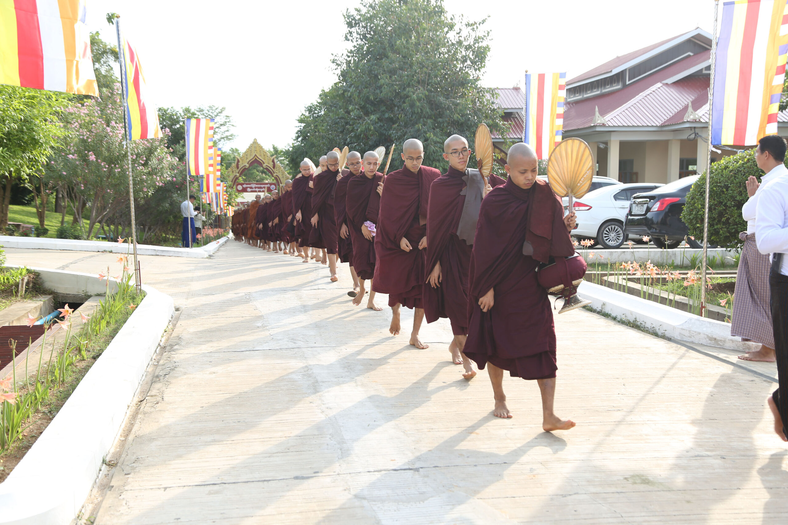 စာတော်ပြန်ပွဲသို့ ဒေသအသီးသီးမှကြွရောက်လာကြသော ဆရာတော်ကြီးများနှင့် စာဖြေသံဃာတော် များအား နေပြည်တော် ၊ ဒက္ခိဏသီရိမြို့နယ် ရန်အောင်မြင်တောရကျောင်း (မြို့တော်ဝန်ကျောင်း)မှ ပင့်ဆောင်ကြိုဆိုကြစဉ်။ (၁၇.၆.၂၀၂၃ ရက်နေ့ညနေခင်း)