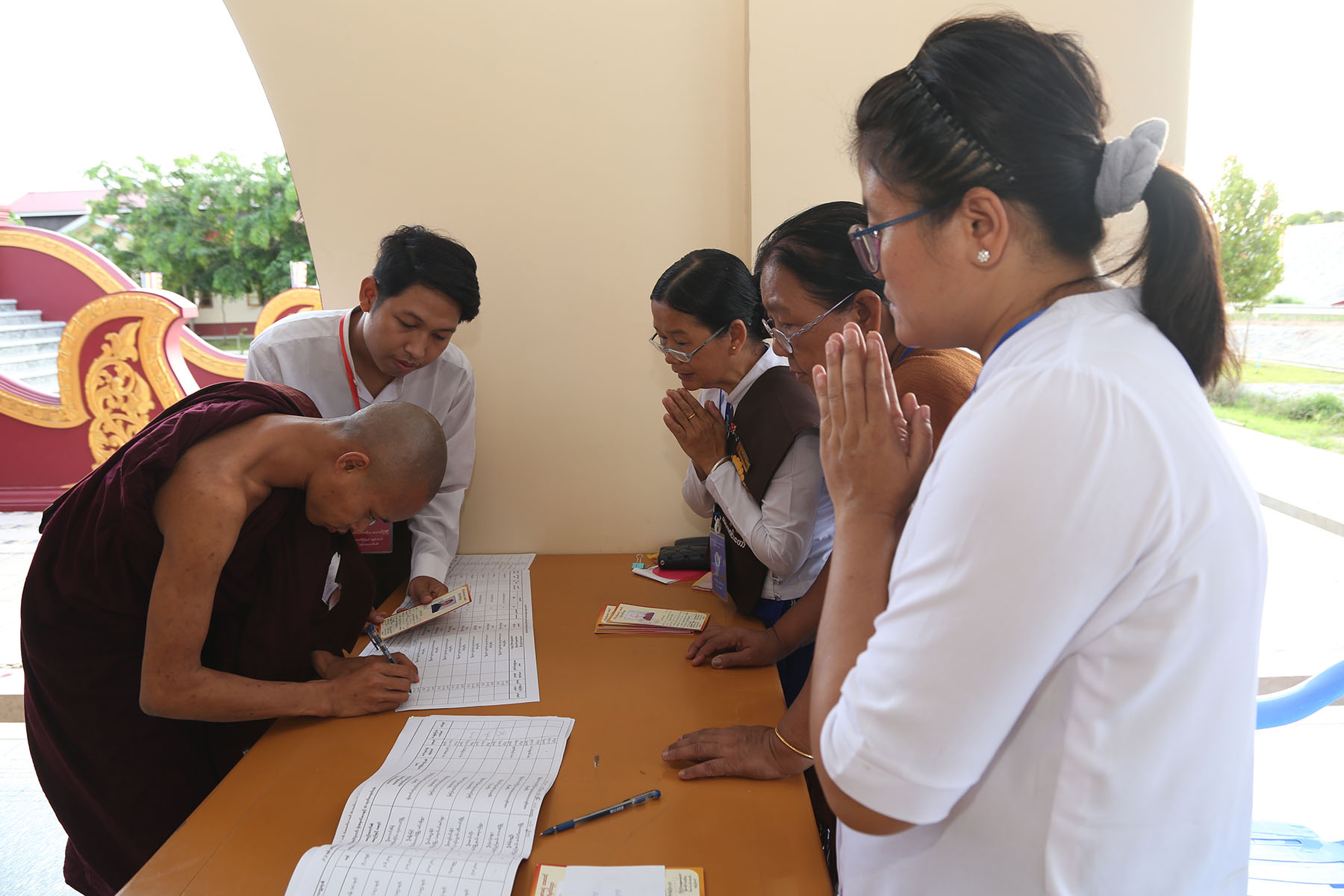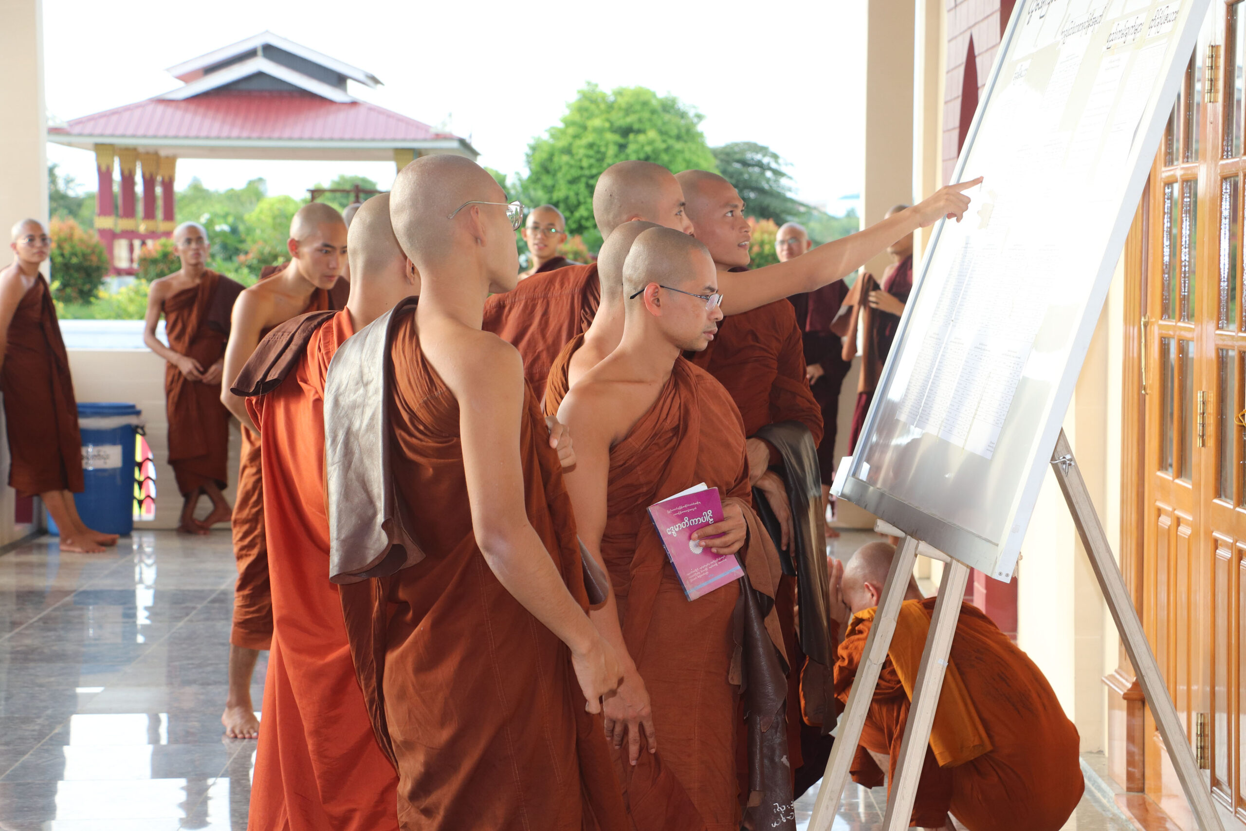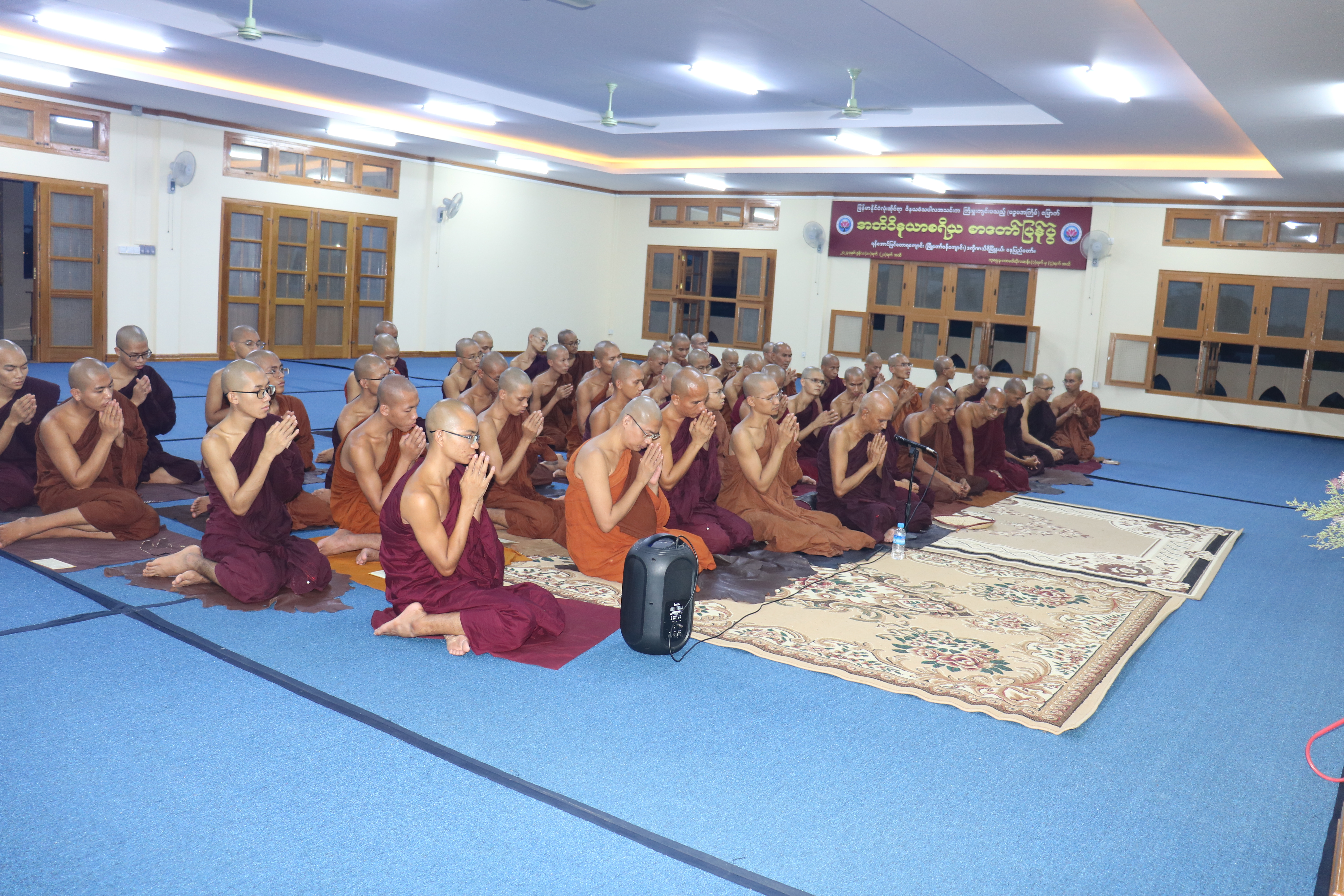 (၂) ၁၇.၆.၂၀၂၃ ရက်နေ့ညပိုင်းတွင် ပုစ္ဆကဆရာတော်များ ၊ စာစစ်ဆရာတော်များ ၊ စာဖြေခန်းကြီးကြပ် ဆရာတော်များ ၊ စာချဆရာတော်များနှင့် စာဖြေသံဃာတော်တို့သည် ရန်အောင်မြင်တောရကျောင်း (မြို့တော်ဝန်ကျောင်း)၊ သီလဝိသောဓနီသိမ်တော်ကြီး၌ ဉပုသ်ပြုကြစဉ်။