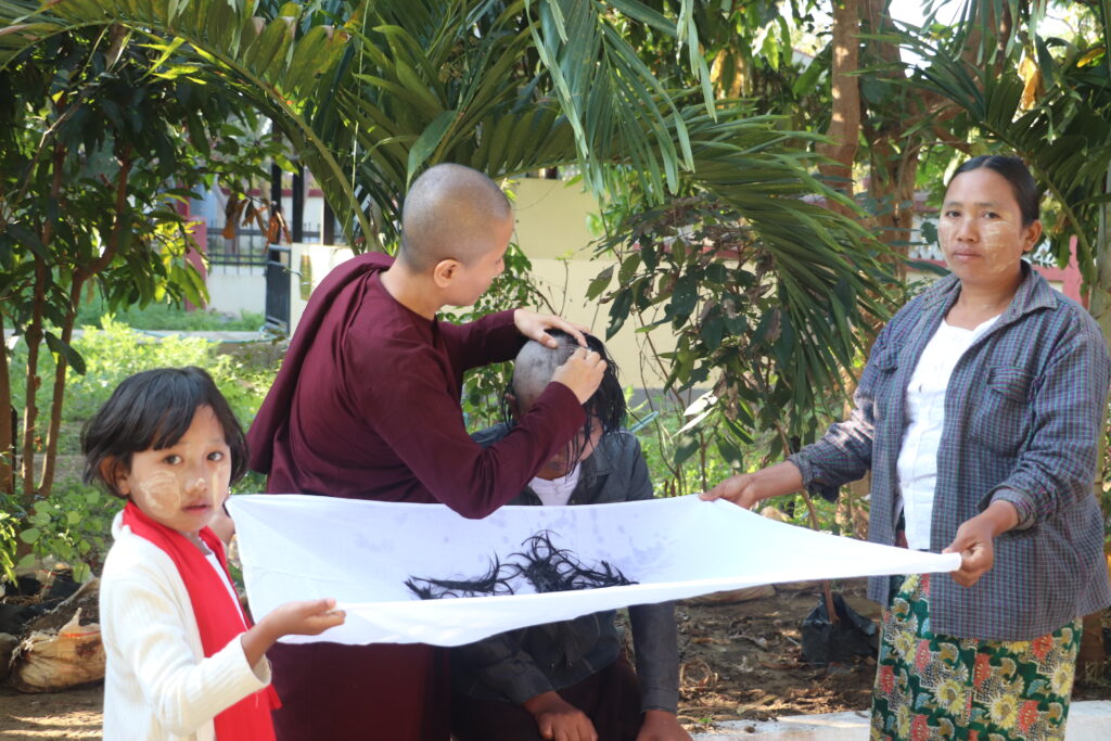 ယဉ်ကျေးလိမ္မာသင်တန်းး ပထမနေ့တွင် ဆံချအလှူပြုခြင်းအား