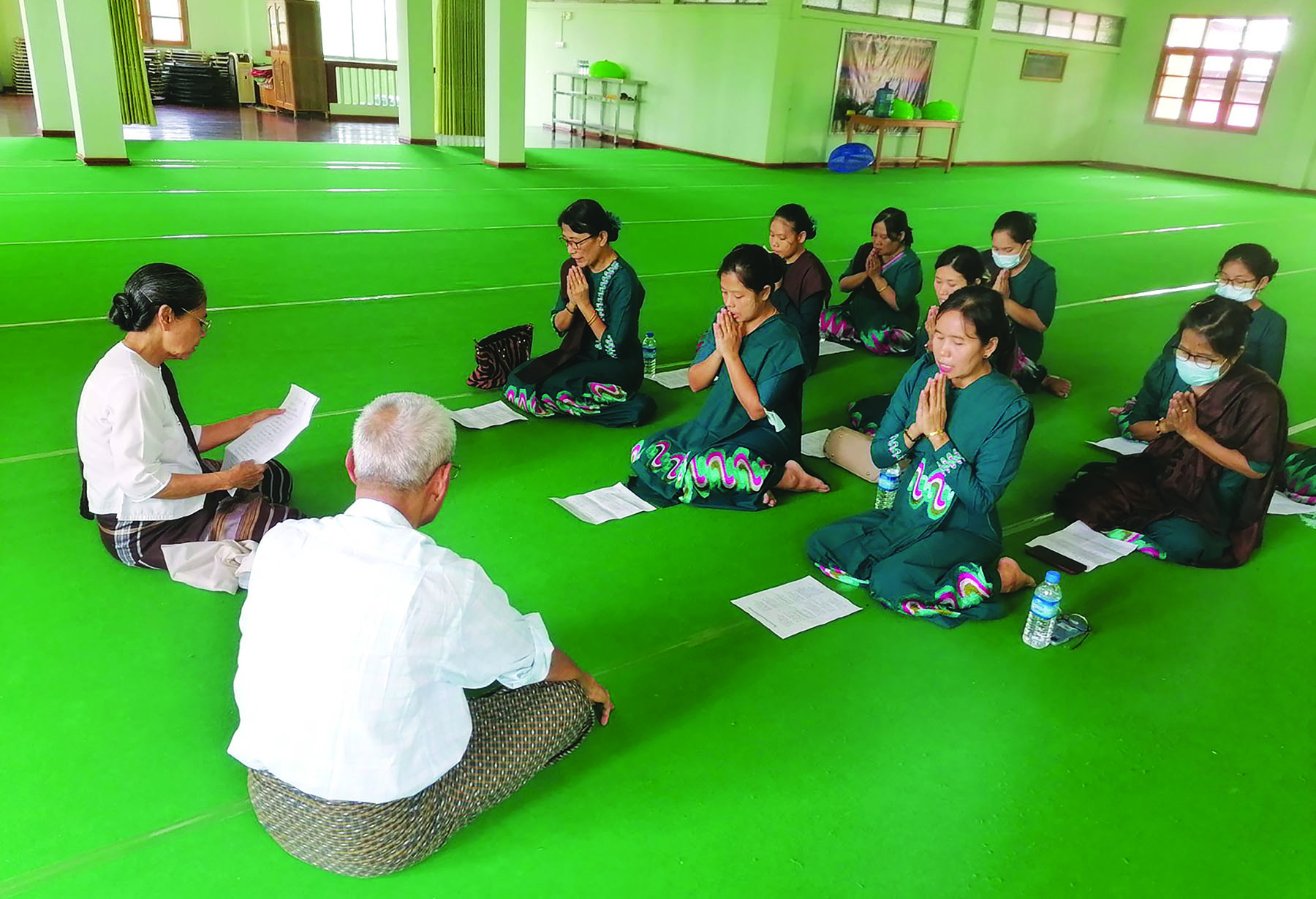 ဘွဲ့နှင်းသဘင်အခမ်းအနားတွင်ရွတ်ဆိုပူဇော်မည့် ဝိနယဝံသပါလအသင်းရှစ်လုံးဖွဲ့ကဗျာများ ရွတ်ဆို လေ့ကျင့်ကြစဉ်။