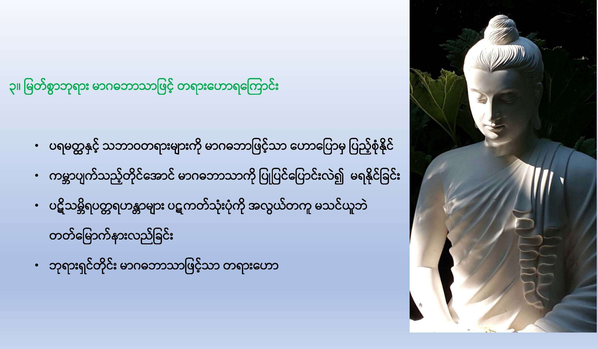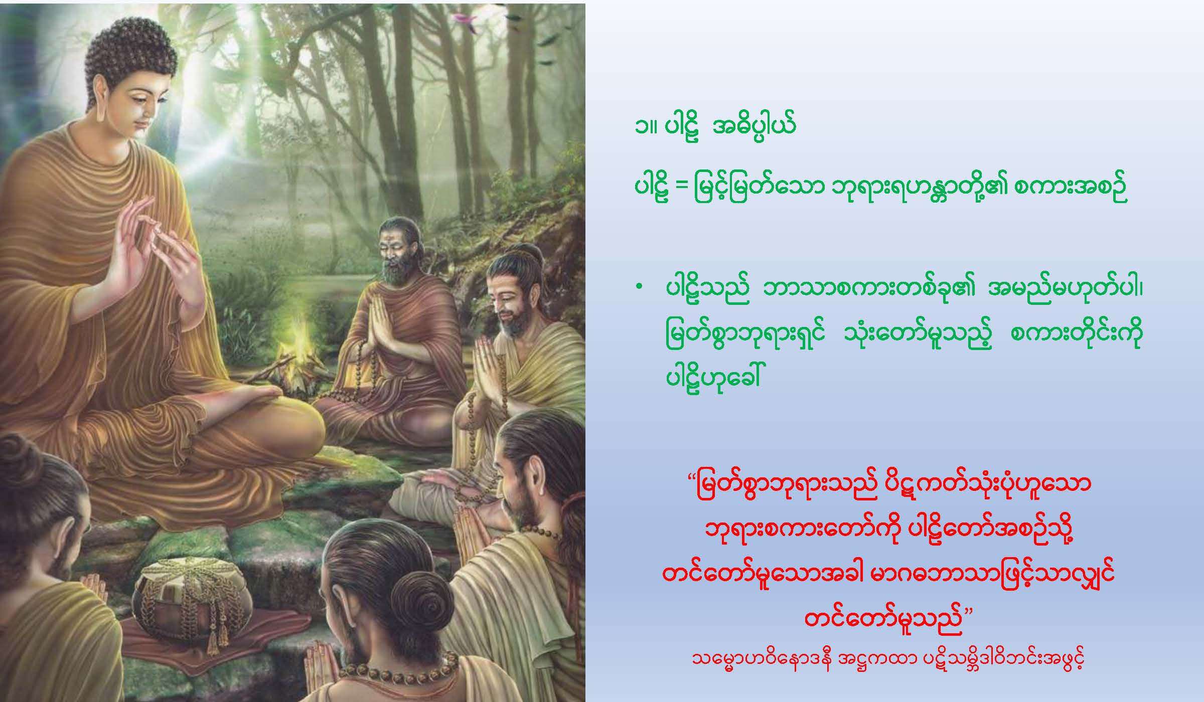 အောက်ပါ link မှ PDF File ကို download ရယူနိုင်ပါသည်။ ပါဠိအခြေခံသင်ခန်းစာ (ပထမနေ့) (459 downloads ) Post Views: 285