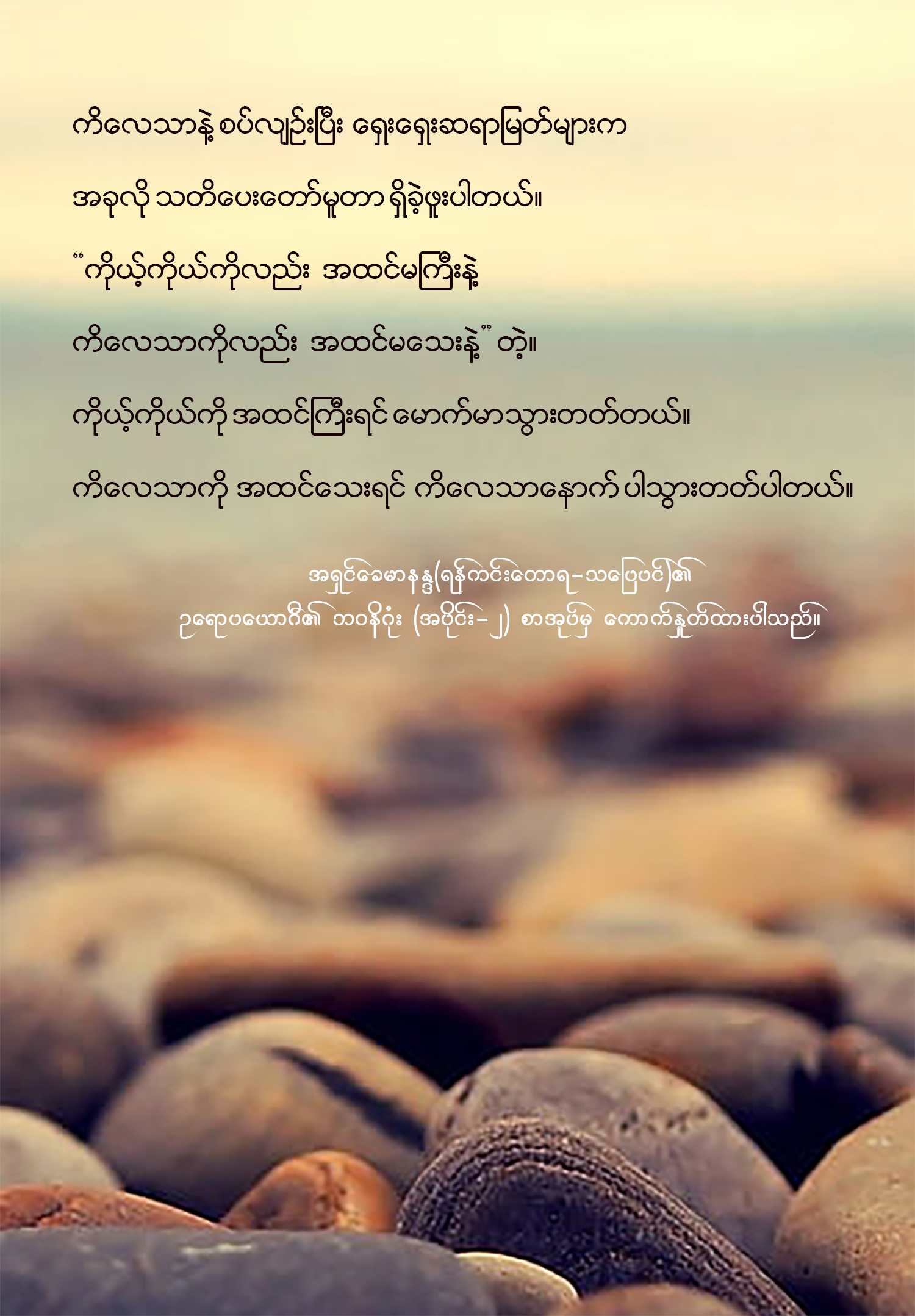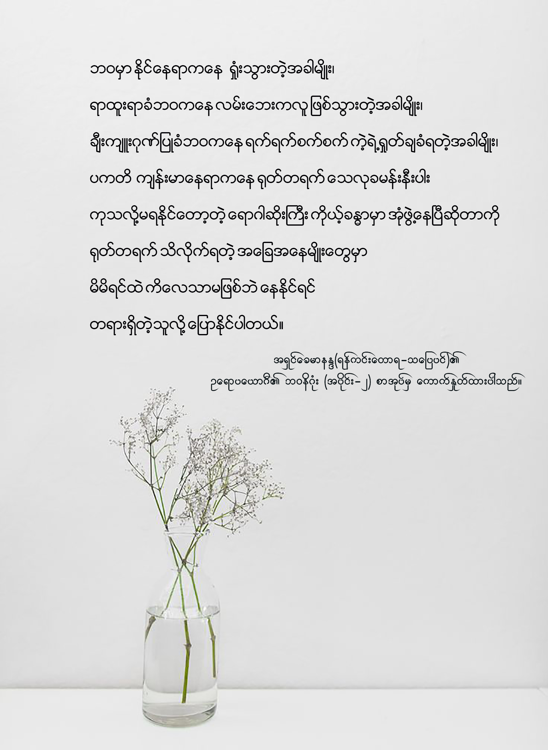 ← ဥရောပယောဂီ၏ ဘ၀နိဂုံး (အပိုင်း-၂) မှ ကောက်နှုတ်ထားပါသည်။ The Quiet Mind ငြိမ်းအေးသောစိတ် (၁) →