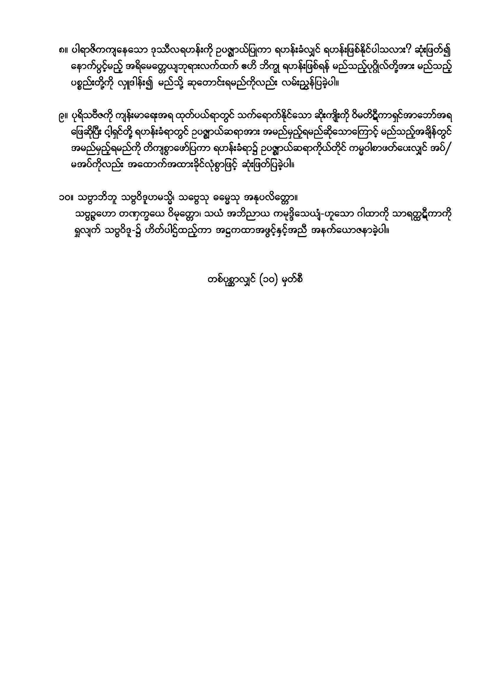 ၂၀၂၀ ခုနှစ် အဘိဝိနယာစရိယစာတော်ပြန်ပွဲ ဒုတိယအဆင့်မေးခွန်း →