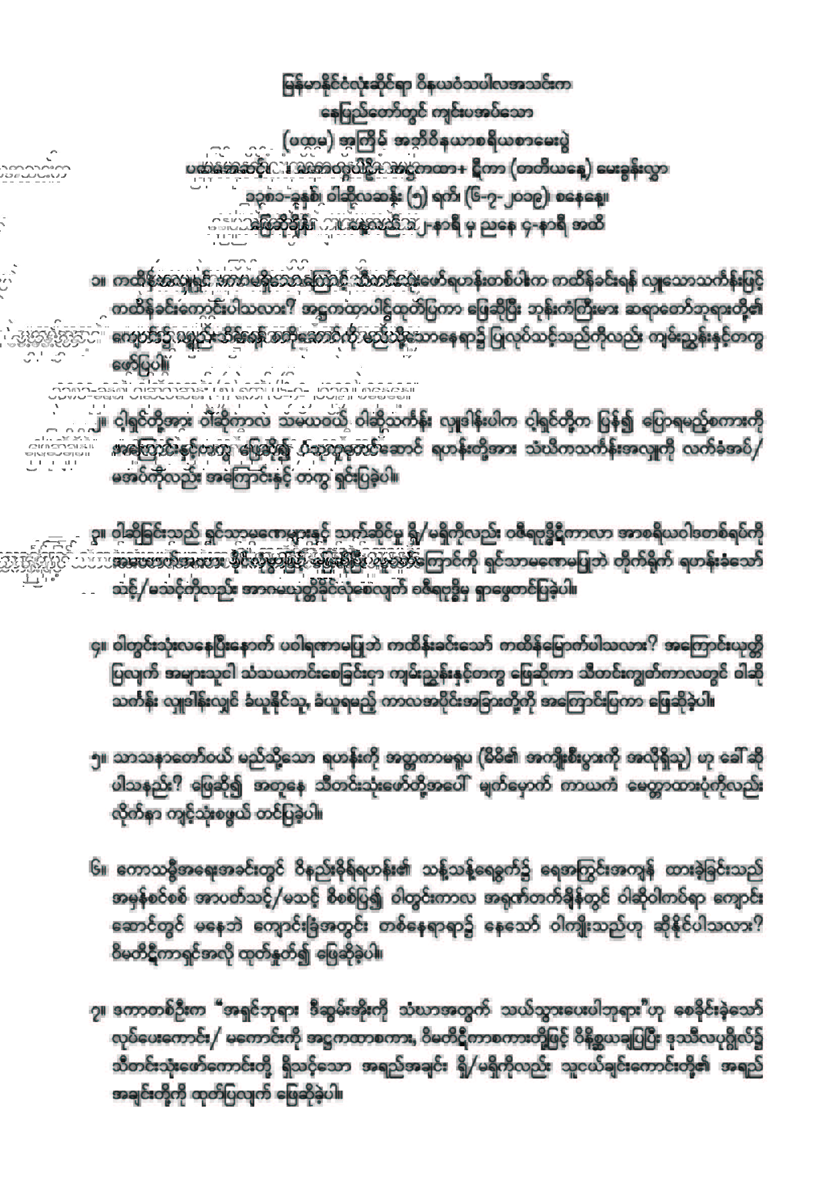 ၂၀၁၉ ခုနှစ် အဘိဝိနယာစရိယစာတော်ပြန်ပွဲ ပထမအဆင့်မေးခွန်း