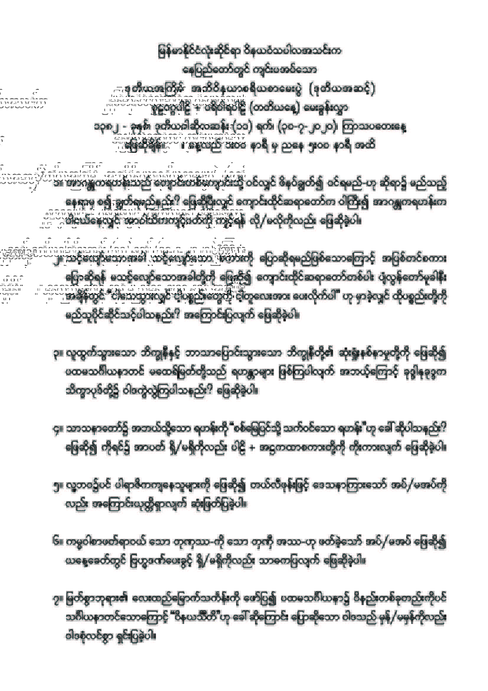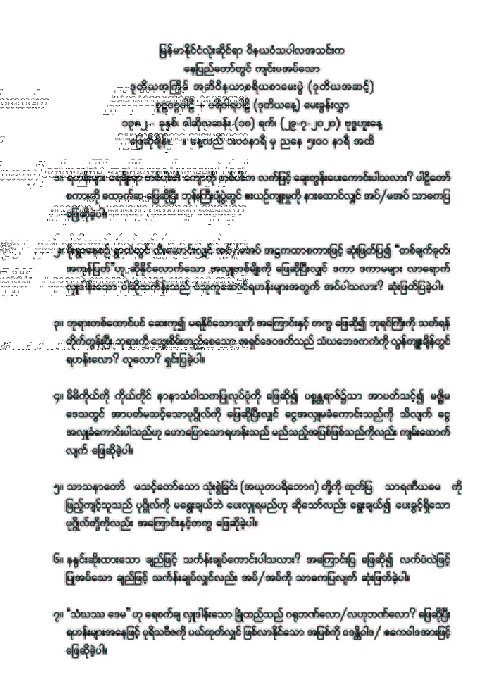 ← ၂၀၁၉ ခုနှစ် အဘိဝိနယာစရိယစာတော်ပြန်ပွဲ ပထမအဆင့်မေးခွန်း ၂၀၂၁ ခုနှစ် အဘိဝိနယာစရိယစာတော်ပြန်ပွဲ တတိယအဆင့်မေးခွန်း →