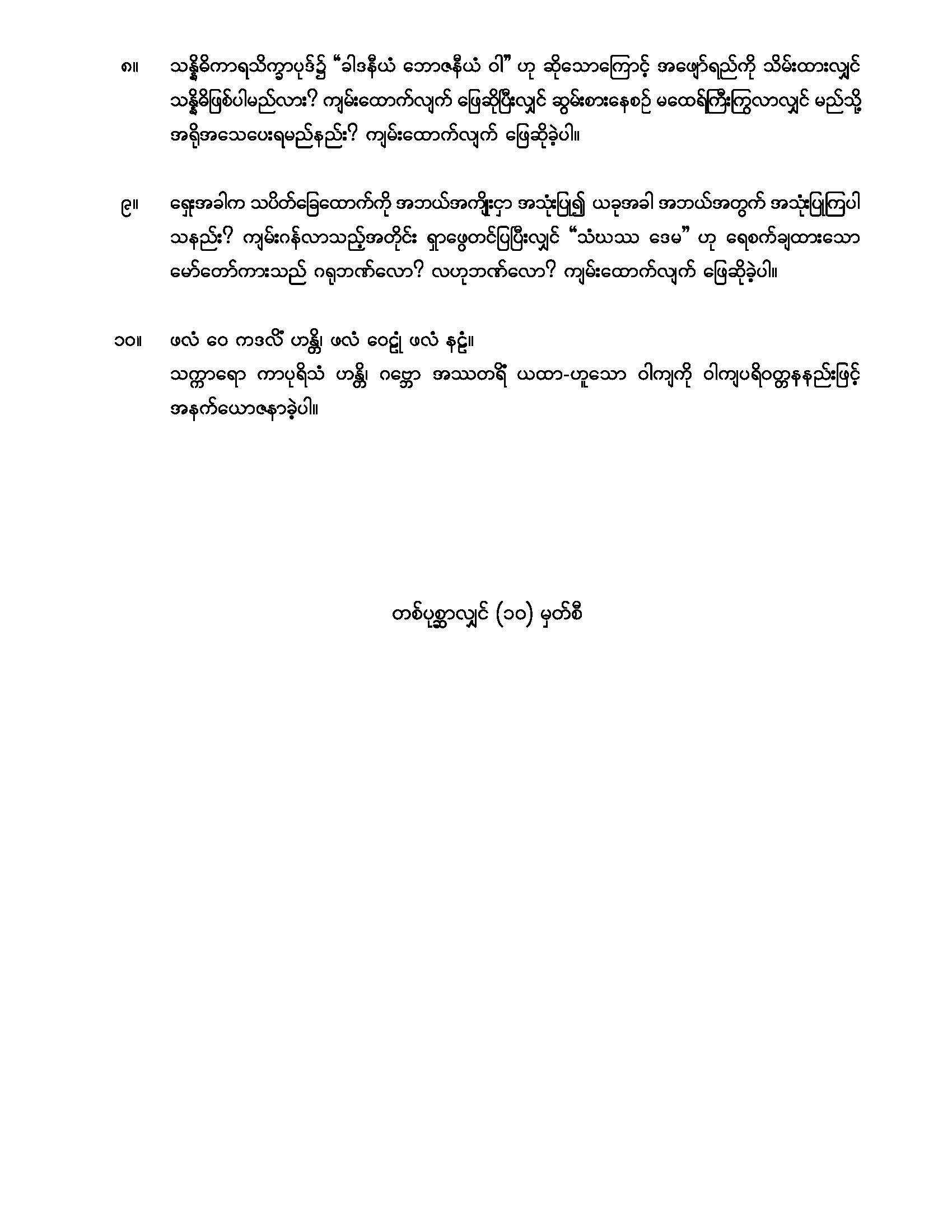 ၂၀၂၁ ခုနှစ် အဘိဝိနယာစရိယစာတော်ပြန်ပွဲ ဒုတိယအဆင့်မေးခွန်း