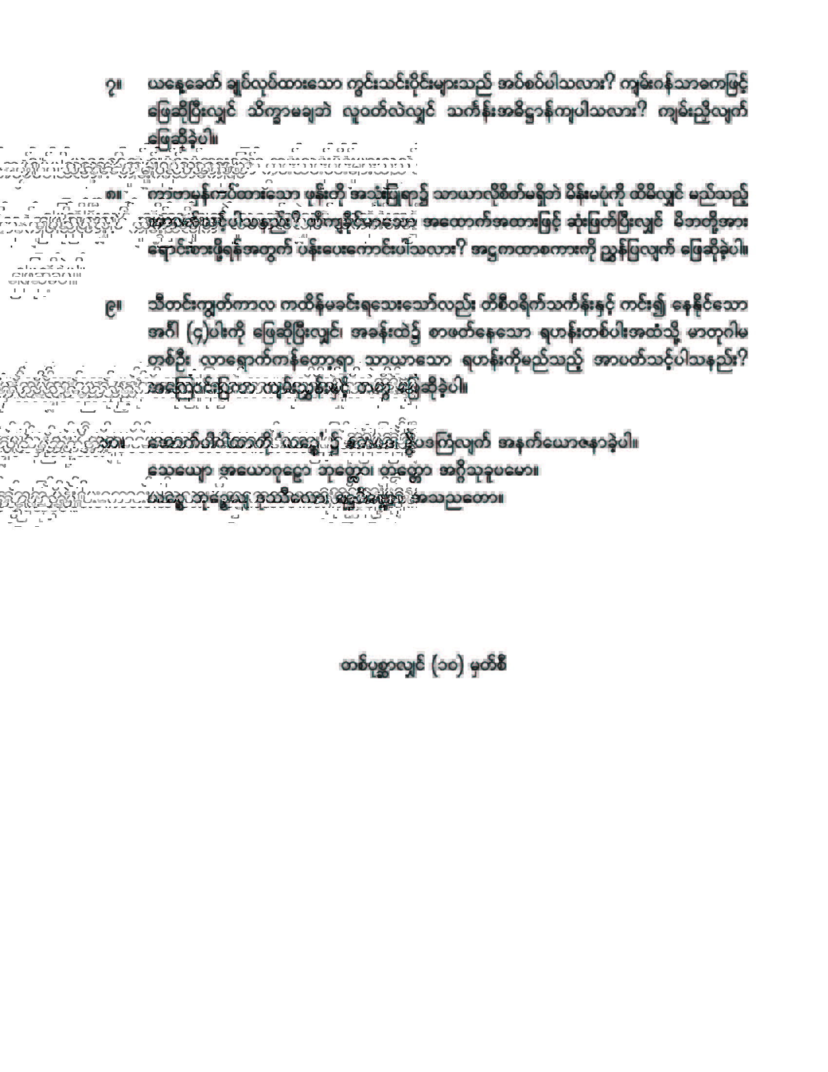 ၂၀၂၁ ခုနှစ် အဘိဝိနယာစရိယစာတော်ပြန်ပွဲ တတိယအဆင့်မေးခွန်း