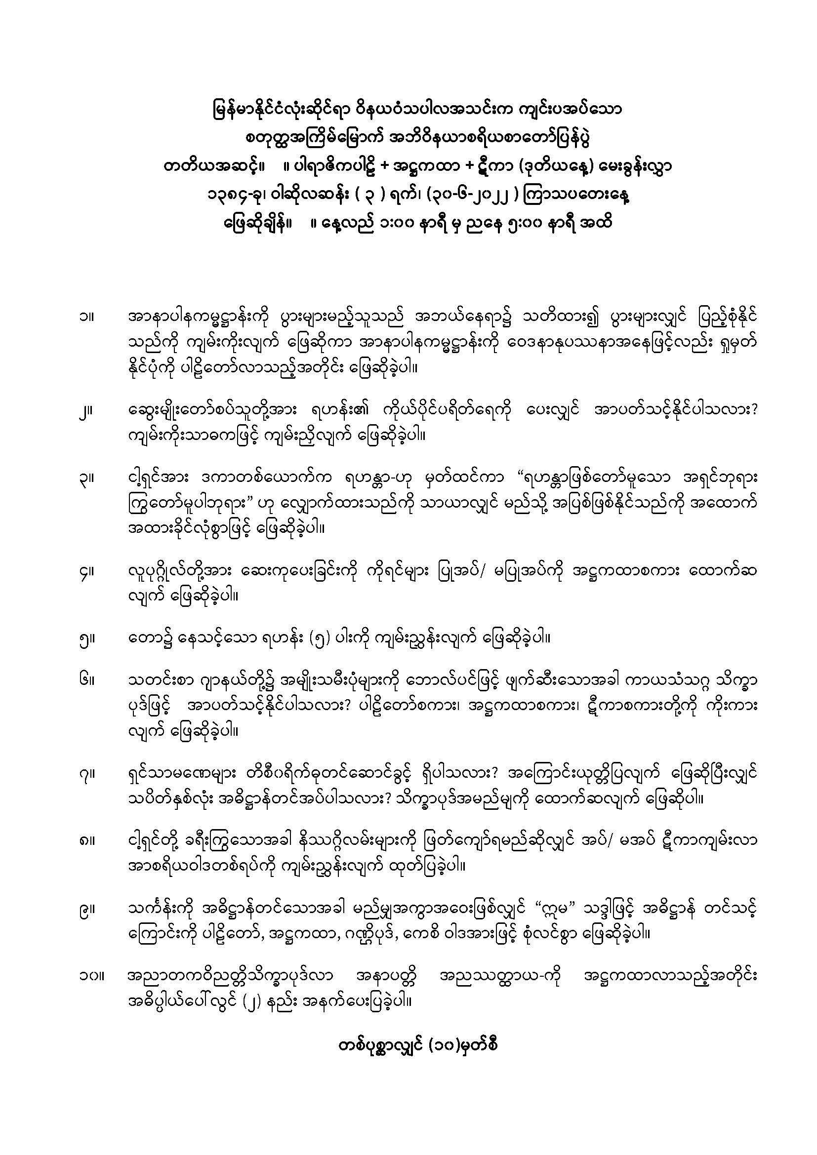 ← ၂၀၂၁ ခုနှစ် အဘိဝိနယာစရိယစာတော်ပြန်ပွဲ ပထမအဆင့်မေးခွန်း