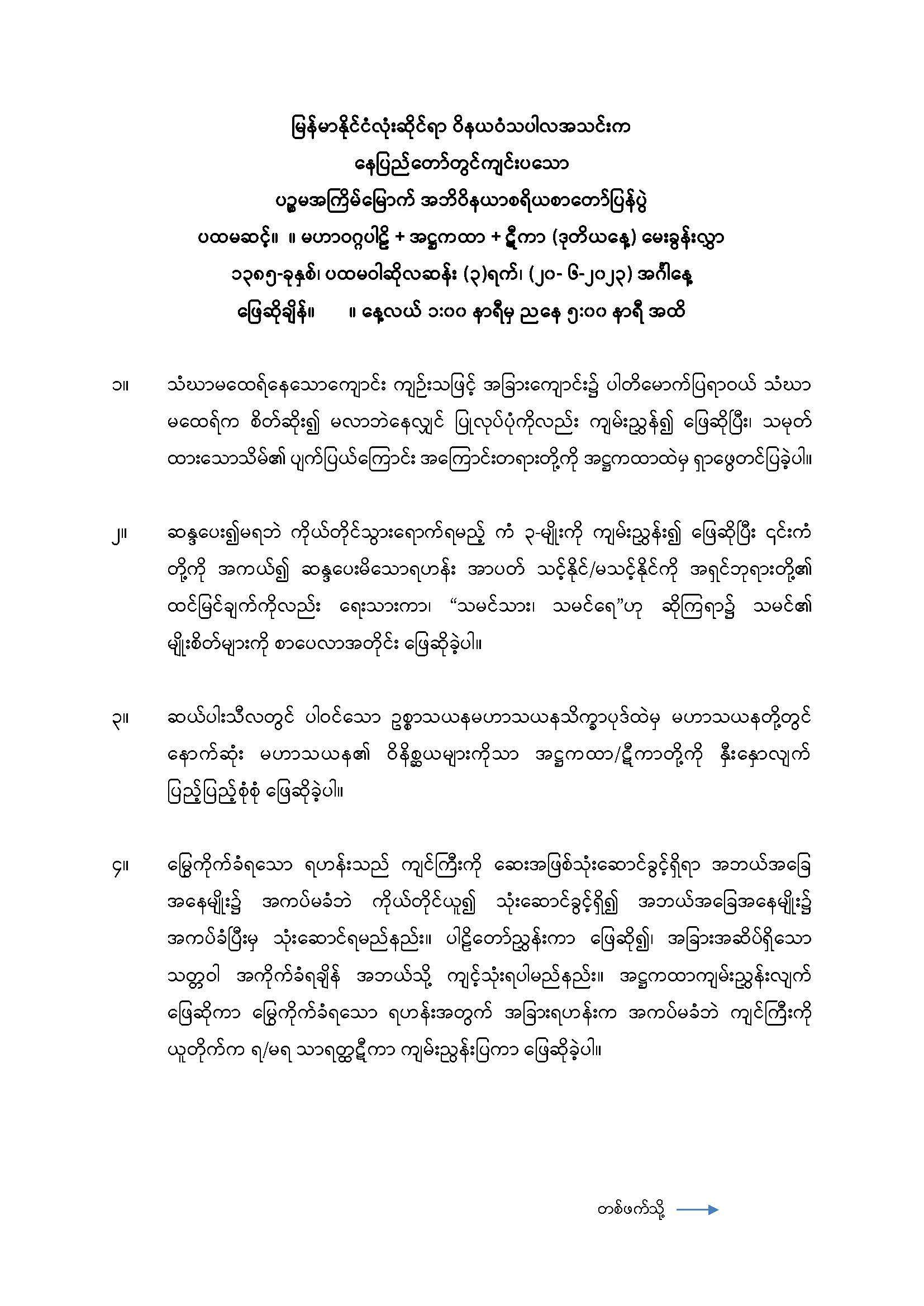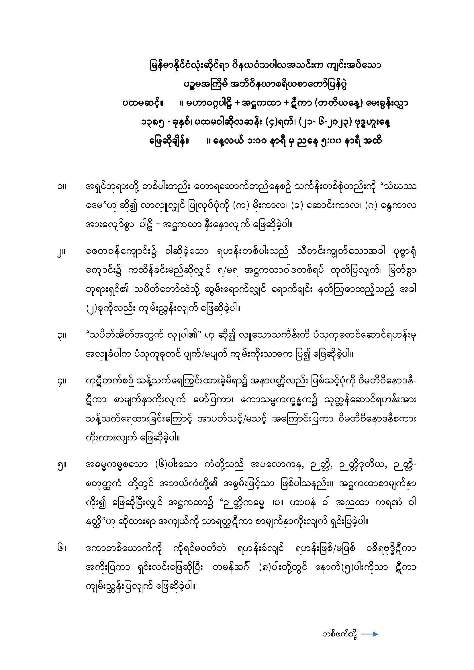 ← ၂၀၂၃ ခုနှစ် အဘိဝိနယာစရိယစာတော်ပြန်ပွဲ ဒုတိယအဆင့်မေးခွန်း ၂၀၂၄ ခုနှစ် အဘိဝိနယာစရိယစာတော်ပြန်ပွဲ တတိယအဆင့်မေးခွန်း →