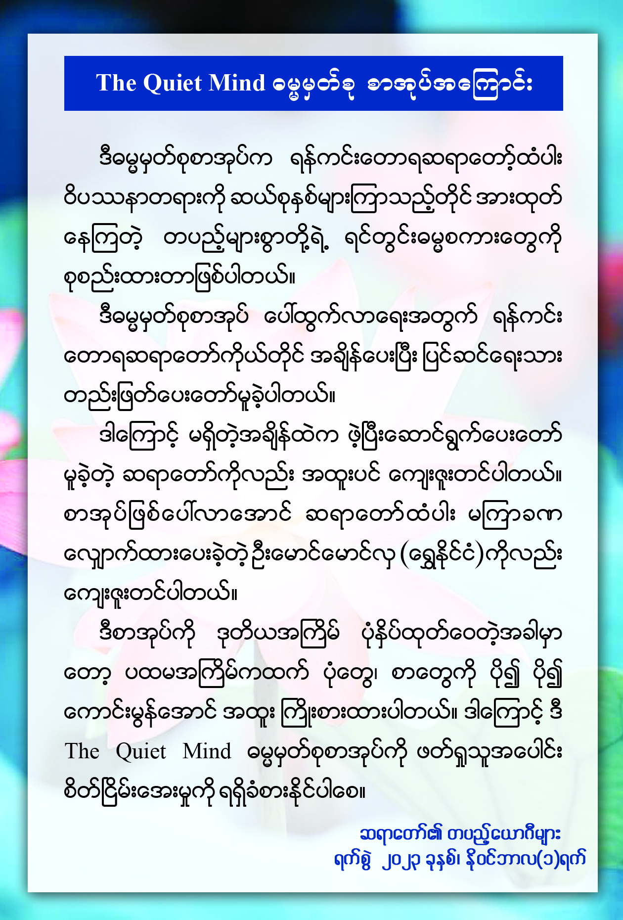 The Quiet Mind ငြိမ်းအေးသောစိတ် (၁)